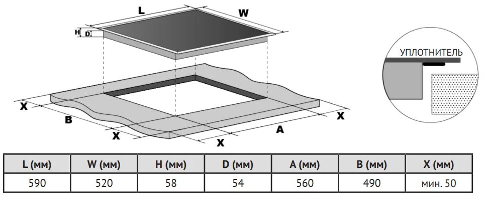 Габариты ниши для встраивания (Ш х Г), см