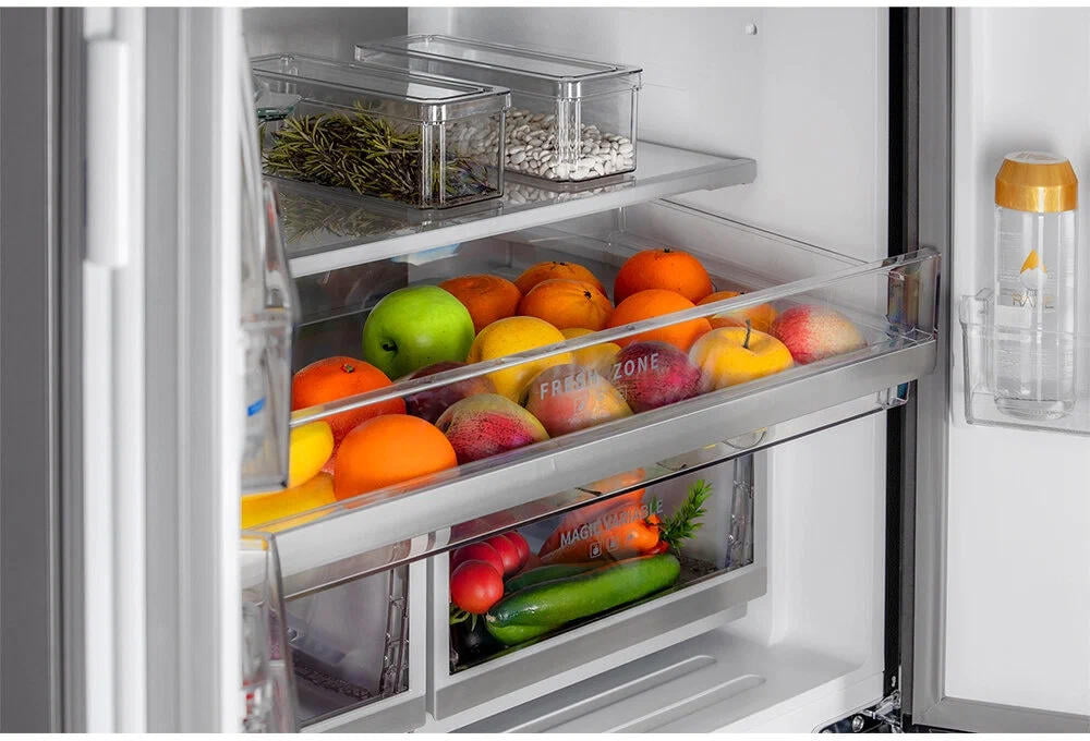 Мембранная технология автоматического поддержания уровня влажности до 90%. В интеллектуальном режиме управления температура внутри холодильника настраивается автоматически. Ящики в холодильной камере выдвижные на направляющих. Один из ящиков в холодильной камере имеет гибкую настройку температуры, где можно выбрать один из предустановленных режимов: напитки, мясо или фрукты.
